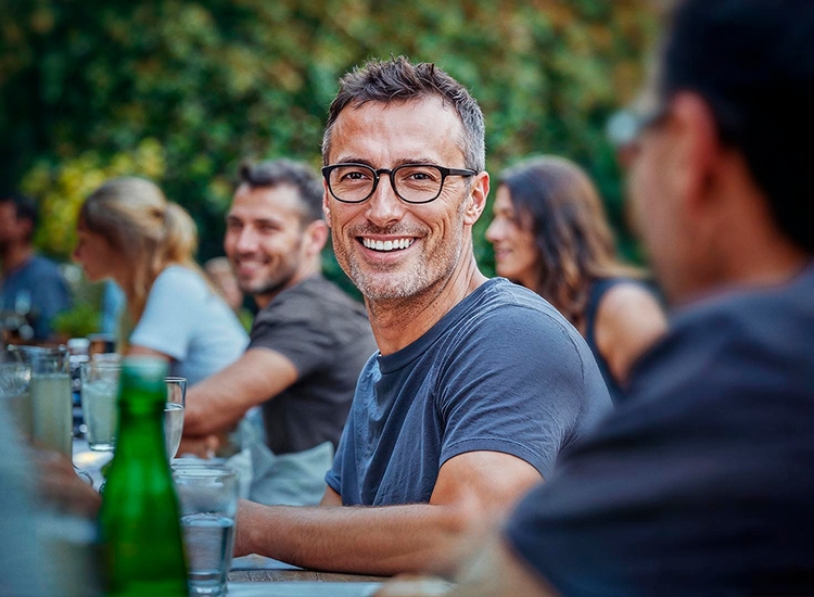 Dzięki powłokom możesz cieszyć się swoimi okularami przez długi czas. Te niewidoczne warstwy ochronne poprawiają trwałość, odporność na zarysowania i właściwości antyrefleksyjne soczewek. Jeśli potrzebujesz ochrony przed zabrudzeniami i kurzem, najnowszej generacji ochrony przed promieniowaniem UV czy też komfortowego widzenia dzięki redukcji sztucznego światła pochodzącego z laptopów lub smartfonów, zapytaj swojego optyka o powłoki Rodenstock Solitaire®.